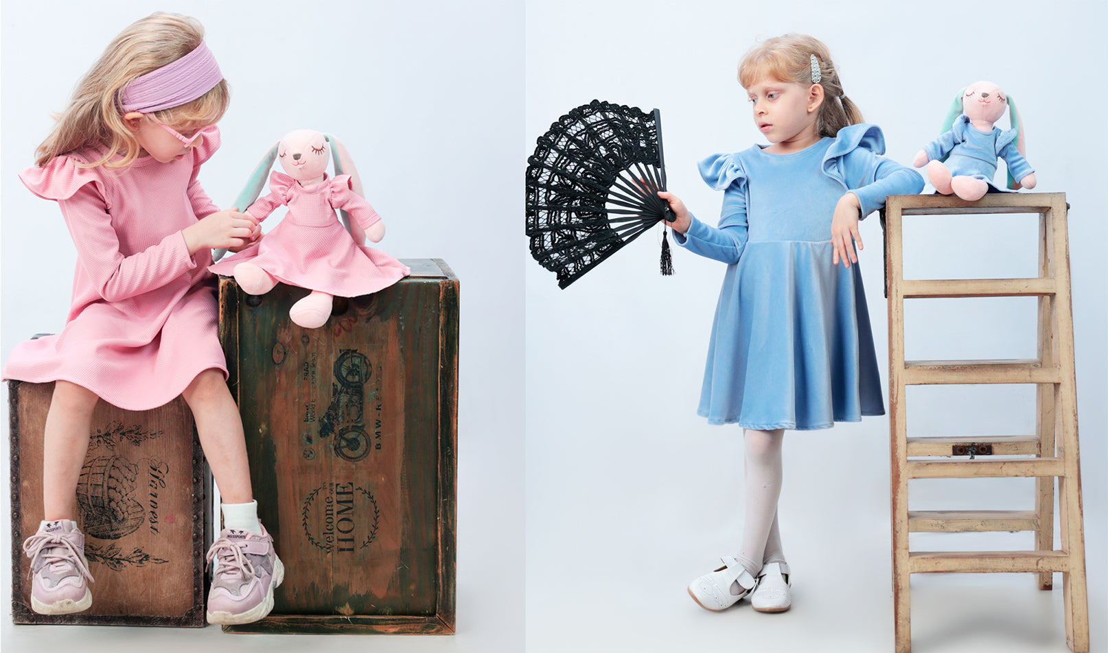 Casual Ruffle Trim Long Sleeve Dress with a matching bunny - FS0009